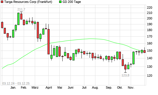 Mit dem Rücksetzer auf 147,80 EUR hat die Targa Resources-Aktie am 02.12.2025 die 200-Tage-Linie nach unten gekreuzt.
