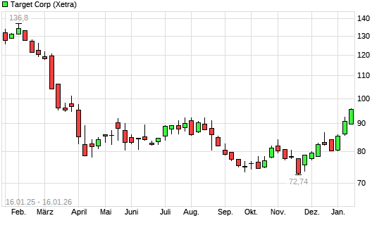 Mit dem Anstieg auf 94,36 EUR hat die Target-Aktie (ISIN US87612E1064) am 15.01.2026 ein neues 6-Monats-Hoch erreicht und damit den Kurs vom 13.01.2026 eingestellt.