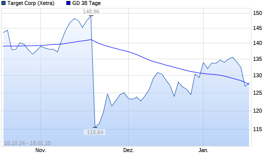 Mit dem Anstieg auf 128,64 EUR hat die Target-Aktie am 17.01.2025 die 38-Tage-Linie nach oben gekreuzt.