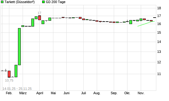 Mit dem Anstieg auf 16,80 EUR hat die Tarkett SA Ord Shs-Aktie am 24.11.2025 die 200-Tage-Linie nach oben gekreuzt.