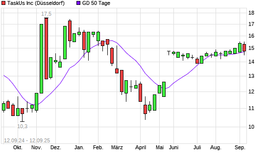 Mit dem Anstieg auf 14,80 EUR hat die TaskUs A-Aktie am 11.09.2025 die 50-Tage-Linie nach oben gekreuzt.