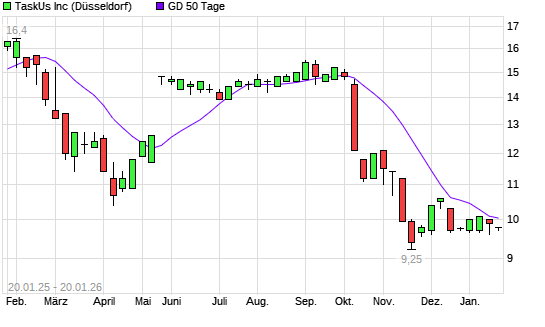 Mit dem Rücksetzer auf 9,80 EUR hat die TaskUs A-Aktie am 19.01.2026 die 50-Tage-Linie nach unten gekreuzt.
