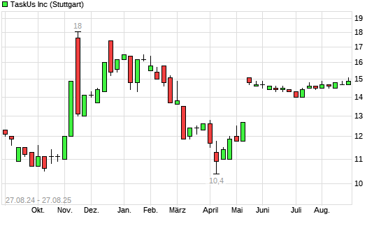Mit dem Anstieg auf 15,10 EUR hat die TaskUs A-Aktie (ISIN US87652V1098) am 26.08.2025 ein neues 6-Monats-Hoch erreicht und damit den Kurs vom 25.08.2025 eingestellt.Die TaskUs A-Aktie befindet ...weiterlesen