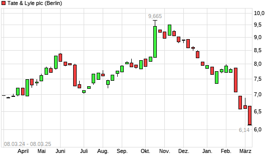 Mit dem Rücksetzer auf 6,19 EUR hat die Tate & Lyle-Aktie (ISIN GB00BP92CJ43) am 07.03.2025 ein neues 3-Jahres-Tief erreicht und damit den Kurs vom 06.03.2025 eingestellt.