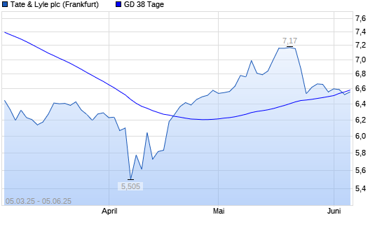 Mit dem Rücksetzer auf 6,52 EUR hat die Tate & Lyle-Aktie am 04.06.2025 die 38-Tage-Linie nach unten gekreuzt.