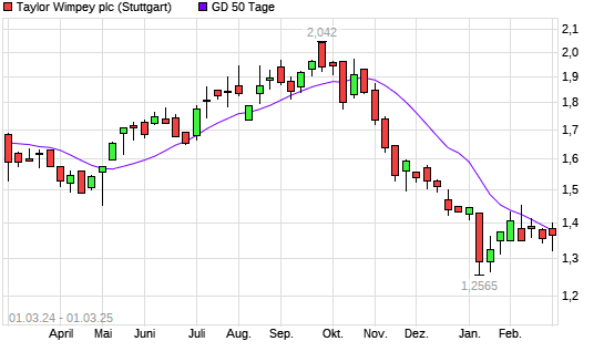 Mit dem Anstieg auf 1,40 EUR hat die Taylor Wimpey-Aktie am 28.02.2025 die 50-Tage-Linie nach oben gekreuzt.