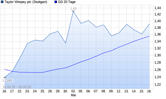 Mit dem Rücksetzer auf 1,37 EUR hat die Taylor Wimpey-Aktie am 15.05.2025 die 20-Tage-Linie nach unten gekreuzt.