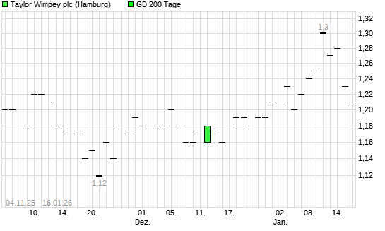 Mit dem Rücksetzer auf 1,23 EUR hat die Taylor Wimpey-Aktie am 15.01.2026 die 200-Tage-Linie nach unten gekreuzt.