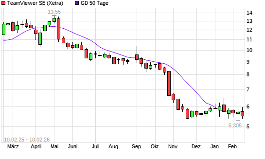 Mit dem Anstieg auf 5,87 EUR hat die TeamViewer-Aktie am 09.02.2026 die 50-Tage-Linie nach oben gekreuzt.