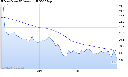 Mit dem Rücksetzer auf 9,46 EUR hat die TeamViewer-Aktie am 30.07.2025 die 38-Tage-Linie nach unten gekreuzt.