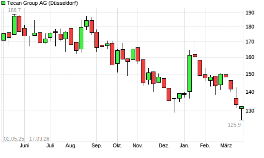Mit dem Rücksetzer auf 131,50 EUR hat die Tecan Group-Aktie (ISIN CH0012100191) am 16.03.2026 ein neues 5-Jahres-Tief erreicht und damit den Kurs vom 18.12.2025 eingestellt.