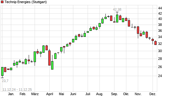 Mit dem Rücksetzer auf 31,80 EUR hat die Technip Energies-Aktie (ISIN NL0014559478) am 10.12.2025 ein neues 6-Monats-Tief erreicht und damit den Kurs vom 03.12.2025 eingestellt.