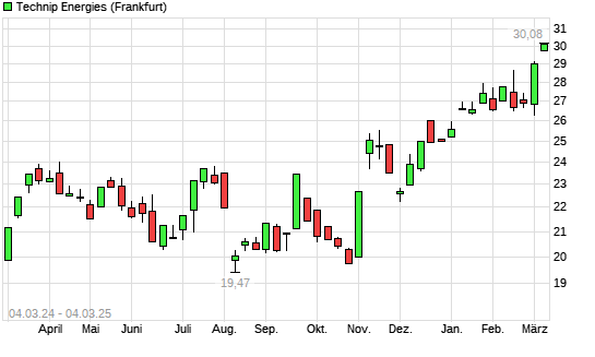 Mit dem Anstieg auf 29,74 EUR hat die Technip Energies-Aktie (ISIN NL0014559478) am 03.03.2025 ein neues All-Time-High erreicht und damit den Kurs vom 28.02.2025 eingestellt.