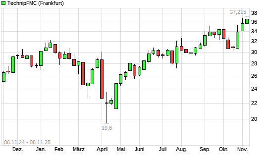 Mit dem Anstieg auf 37,09 EUR hat die TechnipFMC-Aktie (ISIN GB00BDSFG982) am 05.11.2025 ein neues All-Time-High erreicht und damit den Kurs vom 03.11.2025 eingestellt.