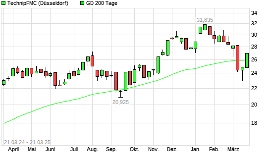 Mit dem Anstieg auf 26,44 EUR hat die TechnipFMC-Aktie am 20.03.2025 die 200-Tage-Linie nach oben gekreuzt.
