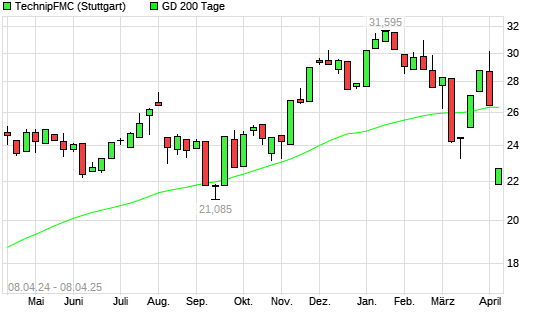 Mit dem Rücksetzer auf 21,83 EUR hat die TechnipFMC-Aktie am 07.04.2025 die 200-Tage-Linie nach unten gekreuzt.