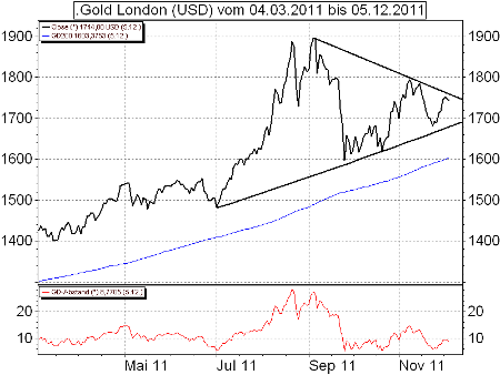 Gold legte eine kleine Verschnaufpause ein und sammelt Kraft vor dem nächsten Höhenflug. Wenn das Edelmetall auf 1760 Punkte klettert, wird charttechnisch ein neues Signal generiert, da die aktuell gültige Dreieckformation gesprengt würde. Lassen Sie die vier Positionen daher laufen (Gewinn +518%, 0%, + 345%, +162%).