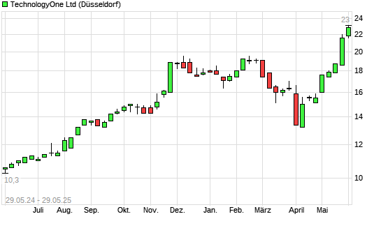 Mit dem Anstieg auf 22,60 EUR hat die Technology One-Aktie (ISIN AU000000TNE8) am 28.05.2025 ein neues All-Time-High erreicht und damit den Kurs vom 27.05.2025 eingestellt.