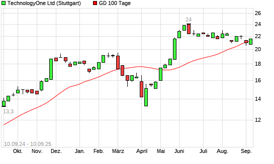 Mit dem Anstieg auf 21,20 EUR hat die Technology One-Aktie am 09.09.2025 die 100-Tage-Linie nach oben gekreuzt.