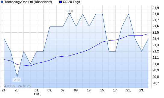 Mit dem Anstieg auf 21,60 EUR hat die Technology One-Aktie am 23.10.2025 die 20-Tage-Linie nach oben gekreuzt.