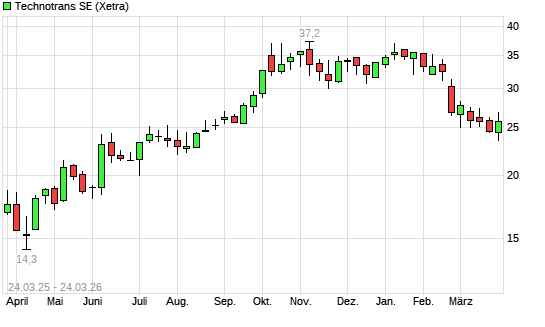Mit dem Rücksetzer auf 24,30 EUR hat die Technotrans-Aktie (ISIN DE000A0XYGA7) am 23.03.2026 ein neues 6-Monats-Tief erreicht und damit den Kurs vom 20.03.2026 eingestellt.