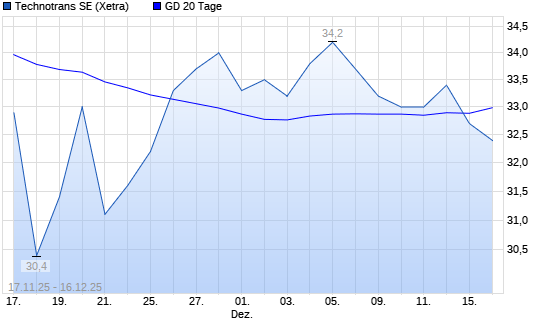 Mit dem Rücksetzer auf 32,60 EUR hat die Technotrans-Aktie am 15.12.2025 die 20-Tage-Linie nach unten gekreuzt.