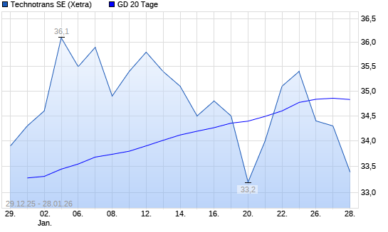 Mit dem Rücksetzer auf 34,30 EUR hat die Technotrans-Aktie am 27.01.2026 die 20-Tage-Linie nach unten gekreuzt.