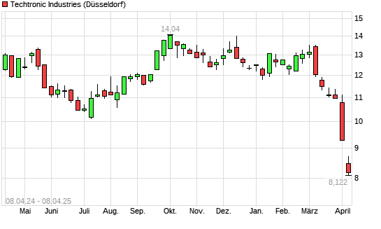 Mit dem Rücksetzer auf 8,48 EUR hat die Techtronic Industries-Aktie (ISIN HK0669013440) am 07.04.2025 ein neues 12-Monats-Tief erreicht und damit den Kurs vom 04.04.2025 eingestellt.