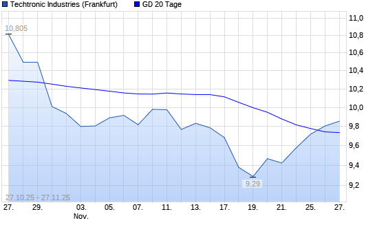 Mit dem Anstieg auf 9,80 EUR hat die Techtronic Industries-Aktie am 26.11.2025 die 20-Tage-Linie nach oben gekreuzt.