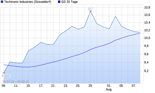 Mit dem Rücksetzer auf 10,09 EUR hat die Techtronic Industries-Aktie am 08.08.2025 die 20-Tage-Linie nach unten gekreuzt.