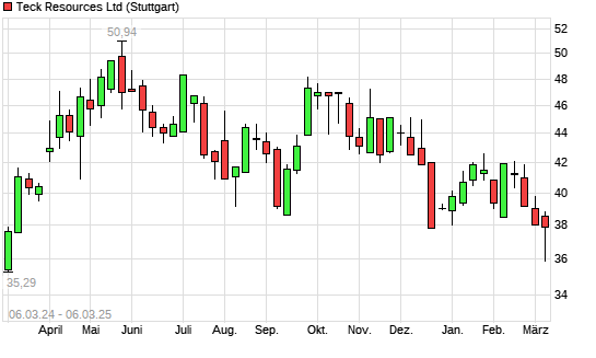 Mit dem Rücksetzer auf 36,46 EUR hat die Teck Resources-Aktie (ISIN CA8787422044) am 05.03.2025 ein neues 6-Monats-Tief erreicht und damit den Kurs vom 04.03.2025 eingestellt.