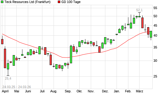 Mit dem Anstieg auf 42,17 EUR hat die Teck Resources-Aktie am 23.03.2026 die 100-Tage-Linie nach oben gekreuzt.