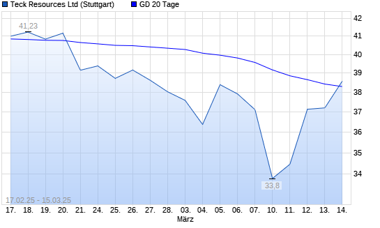 Mit dem Anstieg auf 38,95 EUR hat die Teck Resources-Aktie am 14.03.2025 die 20-Tage-Linie nach oben gekreuzt.