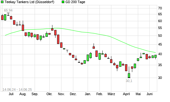 Mit dem Anstieg auf 40,40 EUR hat die Teekay Tankers-Aktie am 13.06.2025 die 200-Tage-Linie nach oben gekreuzt.