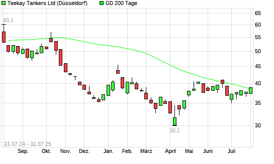 Mit dem Anstieg auf 38,60 EUR hat die Teekay Tankers-Aktie am 30.07.2025 die 200-Tage-Linie nach oben gekreuzt.