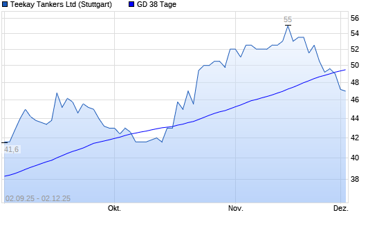 Mit dem Rücksetzer auf 48,00 EUR hat die Teekay Tankers-Aktie am 01.12.2025 die 38-Tage-Linie nach unten gekreuzt.