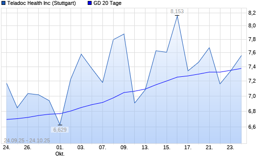 Mit dem Rücksetzer auf 7,13 EUR hat die Teladoc Health-Aktie am 23.10.2025 die 20-Tage-Linie nach unten gekreuzt.
