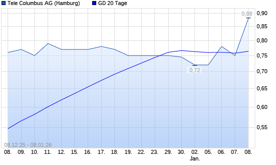 Mit dem Rücksetzer auf 0,75 EUR hat die Tele Columbus-Aktie am 07.01.2026 die 20-Tage-Linie nach unten gekreuzt.