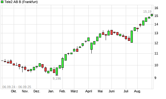Mit dem Anstieg auf 15,13 EUR hat die Tele2 B-Aktie (ISIN SE0005190238) am 05.09.2025 ein neues 10-Jahres-Hoch erreicht und damit den Kurs vom 04.09.2025 eingestellt.