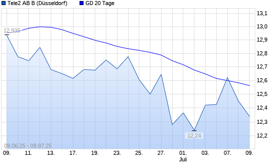 Mit dem Anstieg auf 12,73 EUR hat die Tele2 B-Aktie am 08.07.2025 die 20-Tage-Linie nach oben gekreuzt.