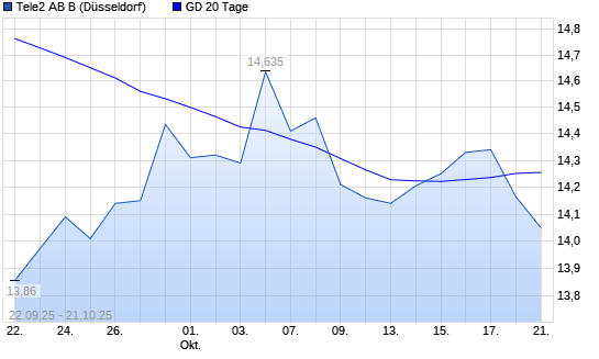 Mit dem Anstieg auf 14,44 EUR hat die Tele2 B-Aktie am 20.10.2025 die 20-Tage-Linie nach oben gekreuzt.