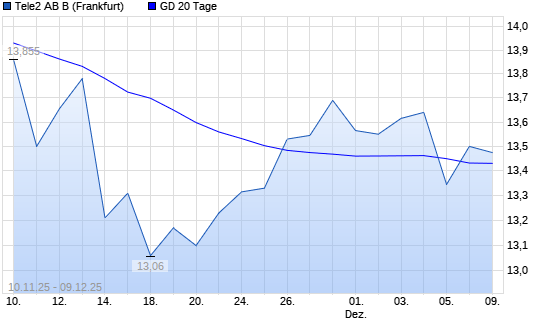 Mit dem Anstieg auf 13,50 EUR hat die Tele2 B-Aktie am 08.12.2025 die 20-Tage-Linie nach oben gekreuzt.