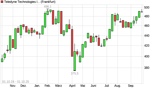Mit dem Anstieg auf 496,00 EUR hat die Teledyne Technologies-Aktie (ISIN US8793601050) am 30.09.2025 ein neues All-Time-High erreicht und damit den Kurs vom 29.09.2025 eingestellt.
