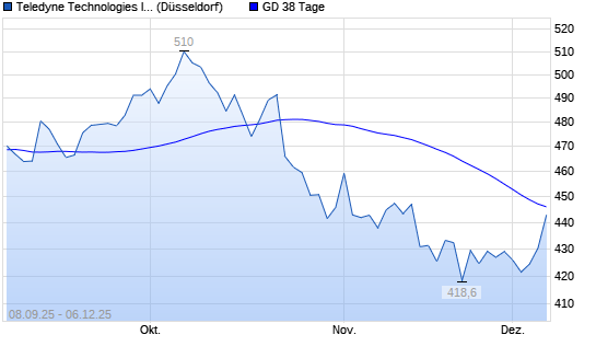 Mit dem Anstieg auf 447,30 EUR hat die Teledyne Technologies-Aktie am 05.12.2025 die 38-Tage-Linie nach oben gekreuzt.