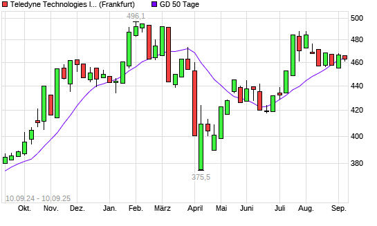 Mit dem Rücksetzer auf 463,00 EUR hat die Teledyne Technologies-Aktie am 09.09.2025 die 50-Tage-Linie nach unten gekreuzt.