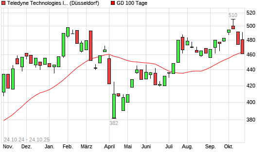 Mit dem Rücksetzer auf 459,90 EUR hat die Teledyne Technologies-Aktie am 23.10.2025 die 100-Tage-Linie nach unten gekreuzt.Die Teledyne Technologies-Aktie befindet sich seit dem 10.07.2025 ...weiterlesen