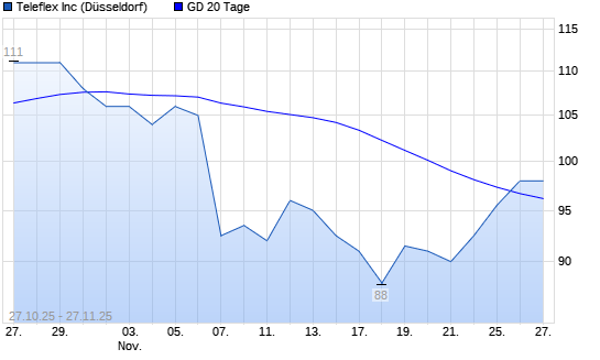 Mit dem Anstieg auf 98,50 EUR hat die Teleflex-Aktie am 26.11.2025 die 20-Tage-Linie nach oben gekreuzt.