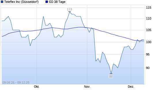 Mit dem Anstieg auf 102,00 EUR hat die Teleflex-Aktie am 08.12.2025 die 38-Tage-Linie nach oben gekreuzt.