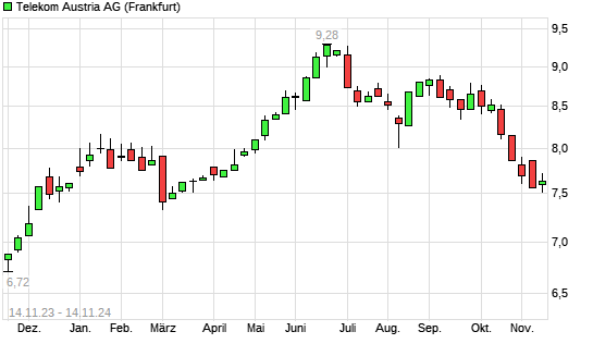 Mit dem Rücksetzer auf 7,52 EUR hat die Telekom Austria-Aktie (ISIN AT0000720008) am 13.11.2024 ein neues 6-Monats-Tief erreicht und damit den Kurs vom 08.11.2024 eingestellt.