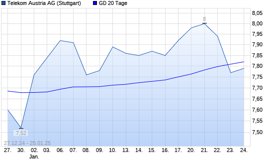 Mit dem Anstieg auf 7,86 EUR hat die Telekom Austria-Aktie am 24.01.2025 die 20-Tage-Linie nach oben gekreuzt.
